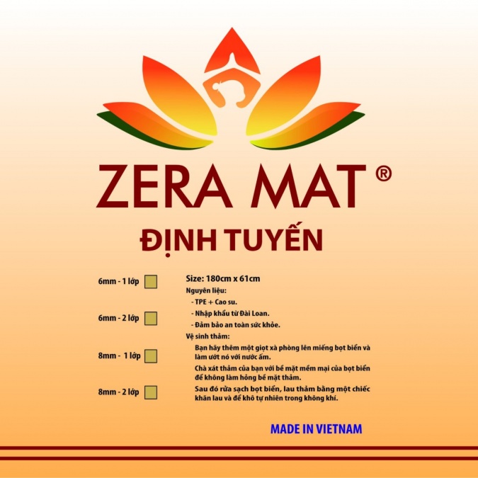 Nội dung: Thảm tập yoga ZERA Định Tuyến là hàng đươc sản xuất tại Việt Nam với dây chuyền sản xuaast hiên đại, nguyên vật liệu được nhập 100% từ Đài Loan nên thảm tập ZERA luôn đảm bảo được chất lượng. Đem lại cảm giác an toàn cho người sử dụng